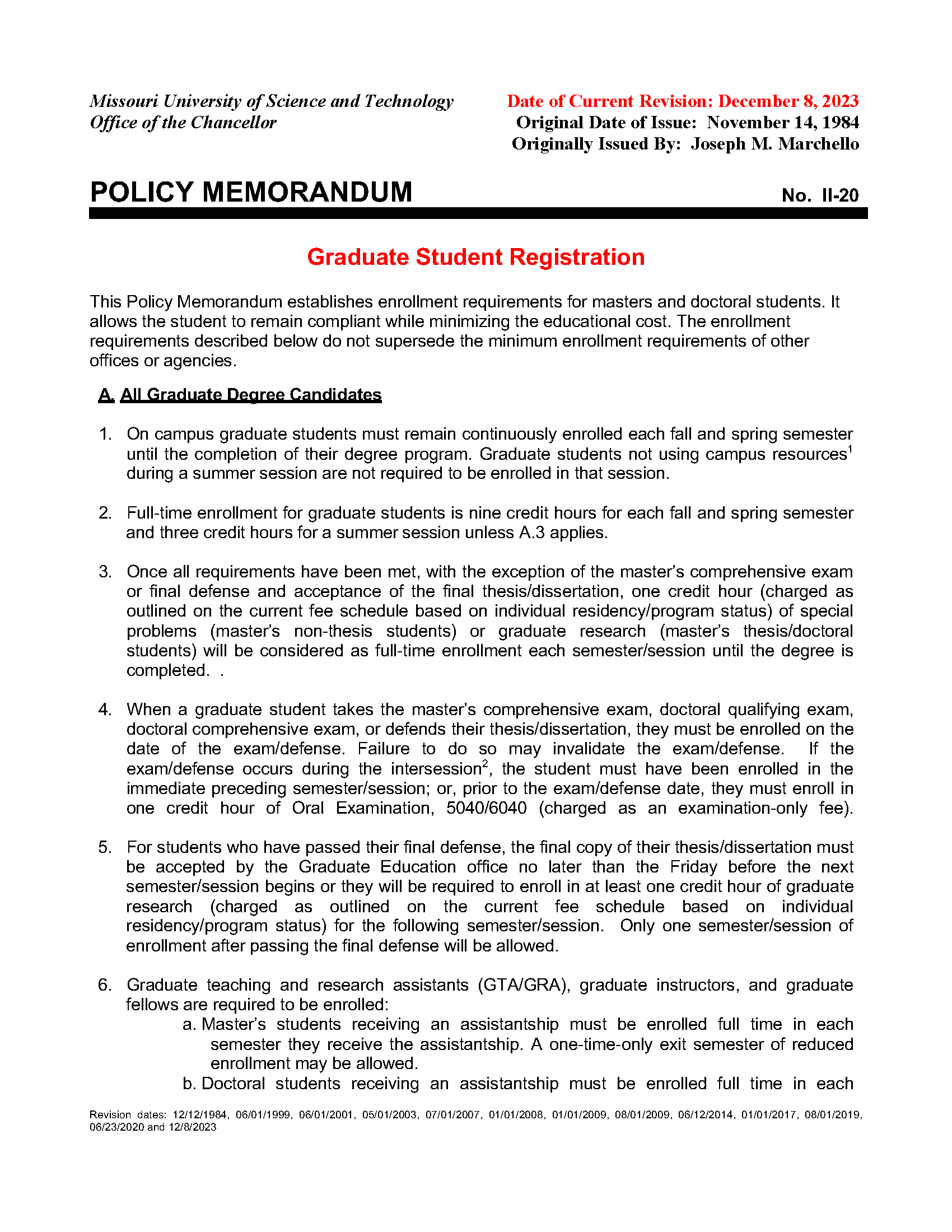 - Full course of study for graduate students is 9 hours per Fall and Spring semesters. Enrollment during the summer session for three hours is required for all students who have a GTA/GRA. Other conditions may apply; please contact the Office of Graduate Education to confirm your summer semester enrollment requirement.